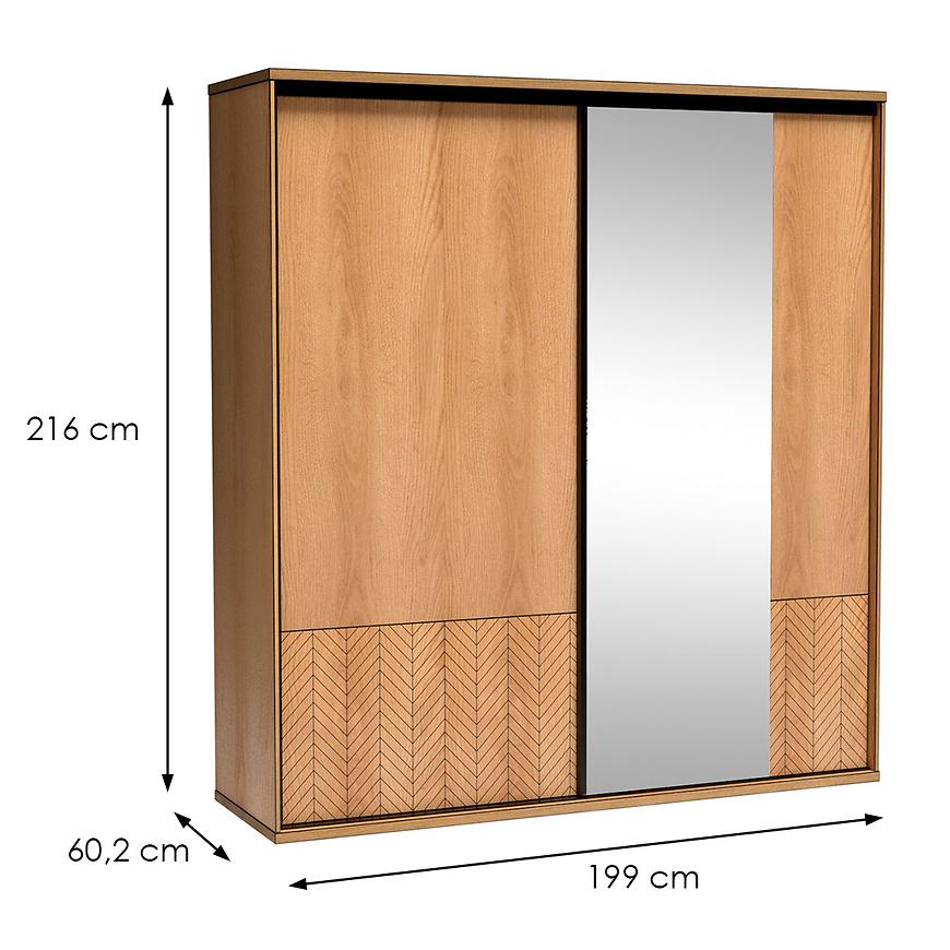 Szafa jest bardzo pojemna, zapewniając sporo miejsca, idealnie dostosowanego do Twoich potrzeb przechowywania. Dzięki drzwiom przesuwnym o dwóch skrzydłach, masz łatwy dostęp do wnętrza nawet wtedy, gdy przestrzeń wokół niej jest ograniczona.