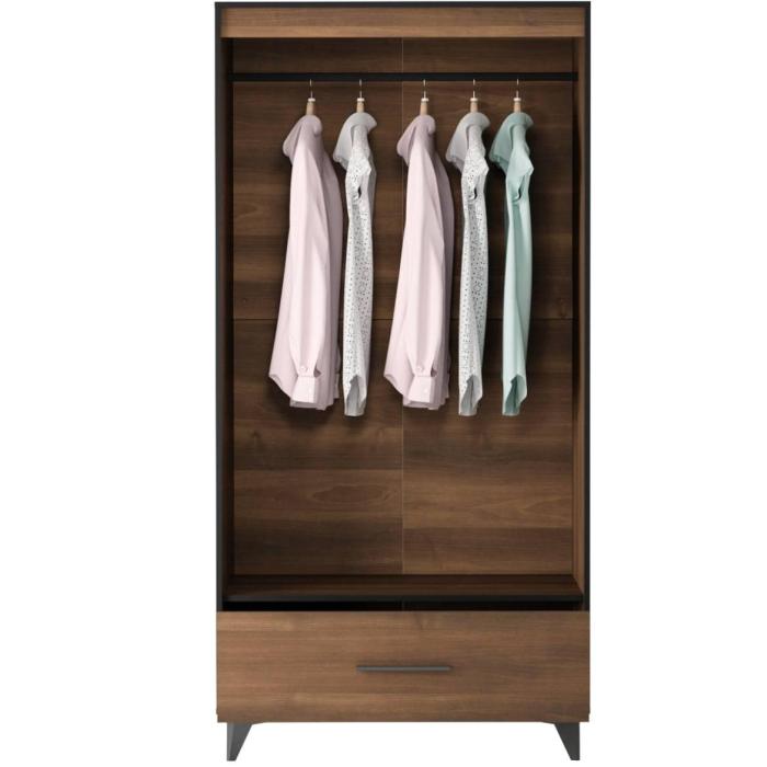 Wygląd szafy Frida zachwyci każdego zwolennika klasycznego, a zarazem ciekawego stylu. Szafa posiada wystarczającą ilość miejsca na ubrania oraz na inne przedmioty. Jest to niezbędny element wyposażenia w każdym domu, garderobie czy przedpokoju. Materiał wykonania to płyta wiórowa laminowana.