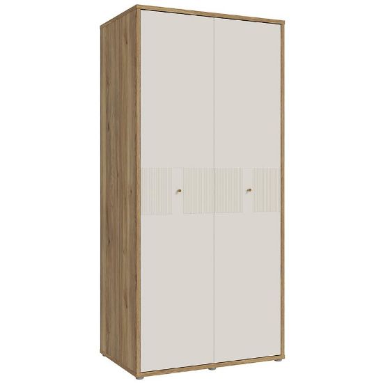 Szafa Funda RNKS822 to elegancki i nowoczesny mebel, który doskonale wpasuje się w każde stylowe wnętrze, dodając mu funkcjonalności i estetycznego uroku. Dzięki prostemu kształtowi i dwudrzwiowej konstrukcji, szafa zapewnia dużą pojemność do przechowywania ubrań i innych niezbędnych przedmiotów, jednocześnie prezentując się lekko i nowocześnie.
