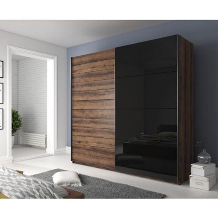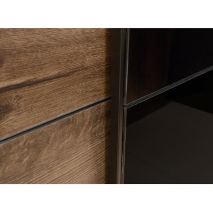 Szafa w kolorze dąb monastery/czarne szkło z serii Galaxy to doskonała propozycja do pokoju dziennego, ale znajdzie swoje miejsce również w innym pomieszczeniu, jak na przykład - przedpokój czy garderobie, sypialni. Mebel został wykonany z płyty MDF. Szafa posiada półki, drążek na ubrania. Mebel będzie świetnym miejscem do wieszania ubrań, na buty lub inne domowe tekstylia. Nowoczesny styl mebli wpadnie do gustu każdemu, kto poszukuje eleganckiego, klasycznego, a zarazem nowoczesnego umeblowania. Idealnie wpasuje się w większość aranżacji. Szafa przeznaczona do samodzielnego montażu.