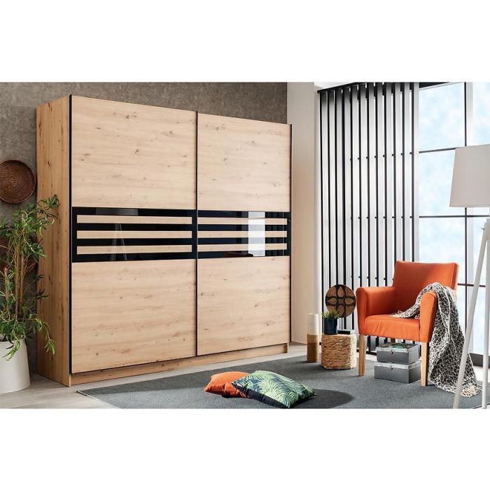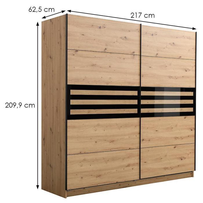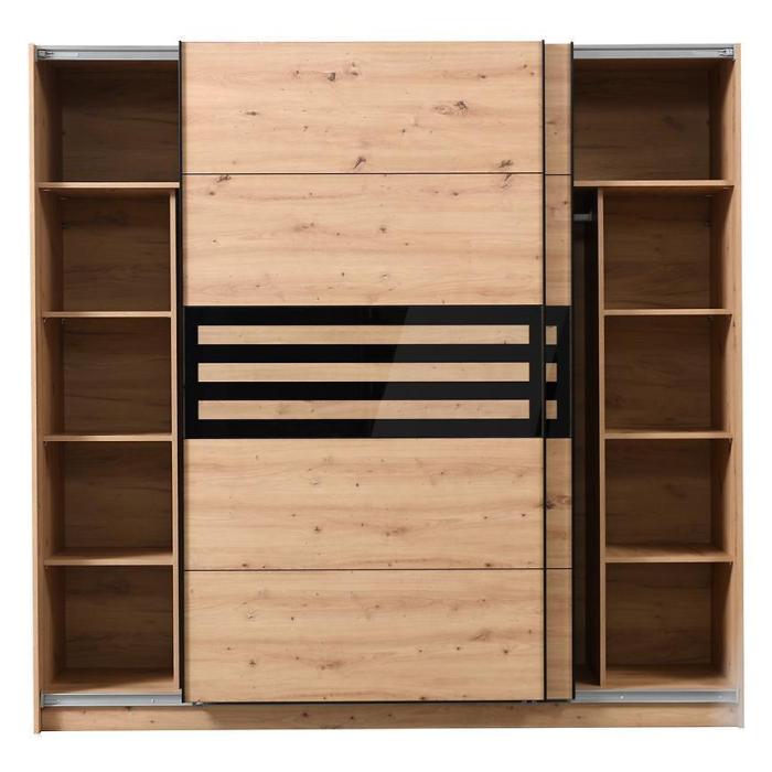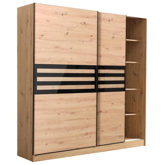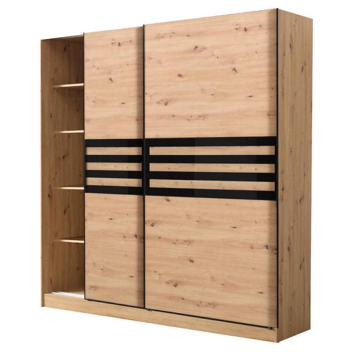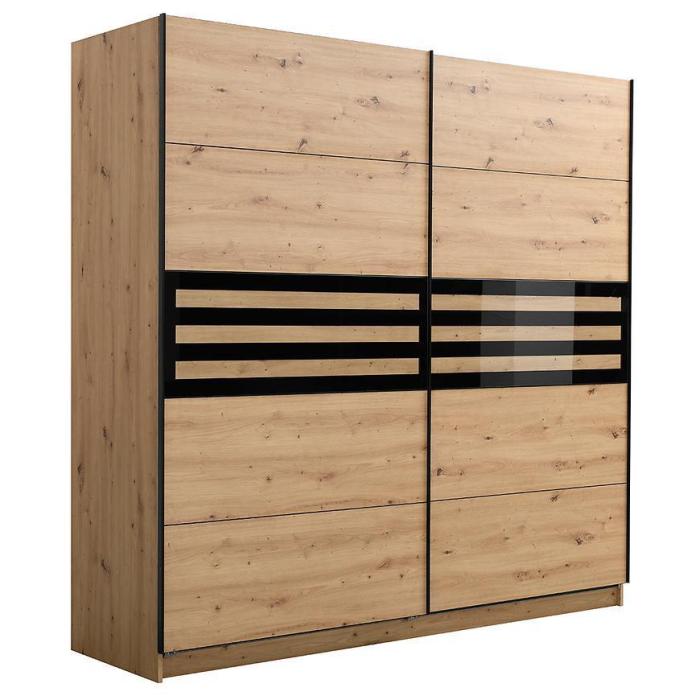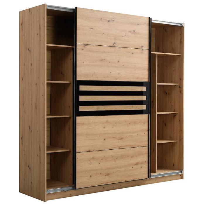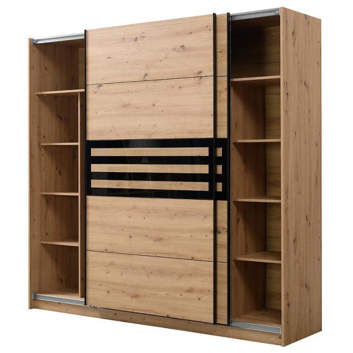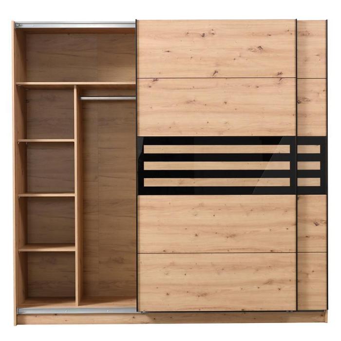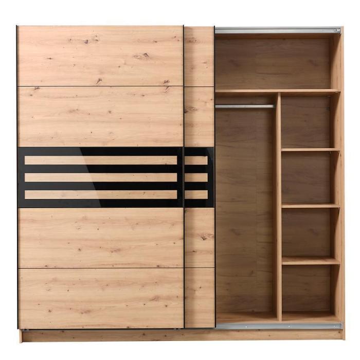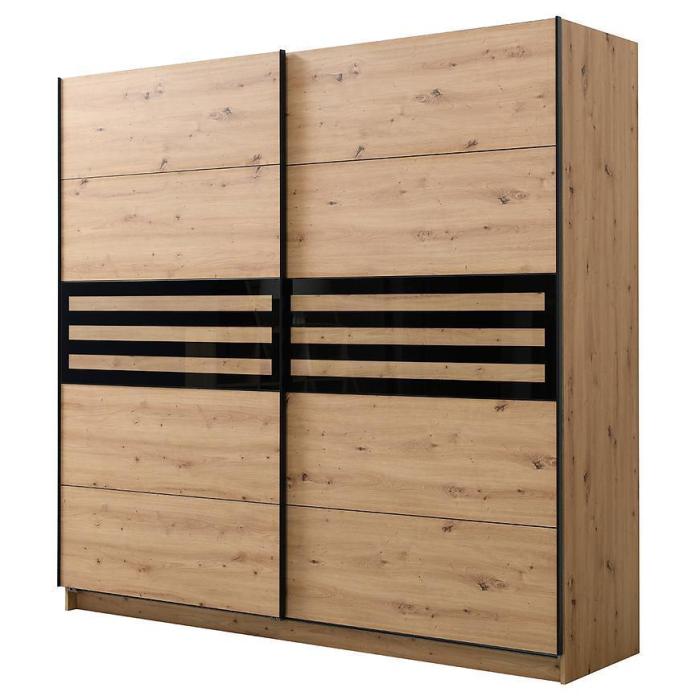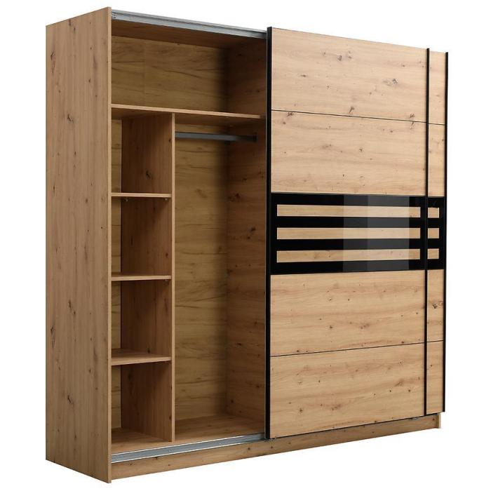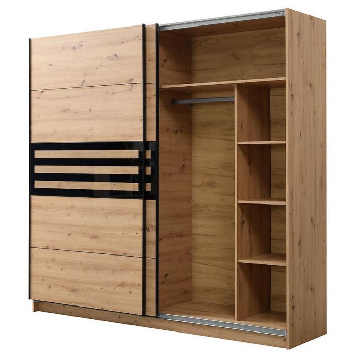 Szafa przesuwna Galicja to propozycja do pokoju dziennego, ale znajdzie swoje miejsce również w innym pomieszczeniu, jak na przykład - przedpokój czy garderobie. Materiał wykonania to płyta wiórowa laminowana. Szafa posiada półki oraz drążek na ubrania. Nowoczesny styl mebli wpadnie do gustu każdemu, kto poszukuje eleganckiego, klasycznego, a zarazem nowoczesnego umeblowania. Idealnie wpasuje się w większość aranżacji. Przeznaczona do samodzielnego montażu.
