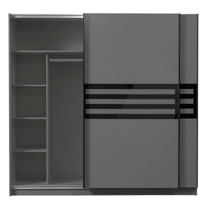 Szafa przesuwna Galicja to propozycja do pokoju dziennego, ale znajdzie swoje miejsce również w innym pomieszczeniu, jak na przykład - przedpokój czy garderobie. Materiał wykonania to płyta wiórowa laminowana. Szafa posiada półki oraz drążek na ubrania. Nowoczesny styl mebli wpadnie do gustu każdemu, kto poszukuje eleganckiego, klasycznego, a zarazem nowoczesnego umeblowania. Idealnie wpasuje się w większość aranżacji. Przeznaczona do samodzielnego montażu.