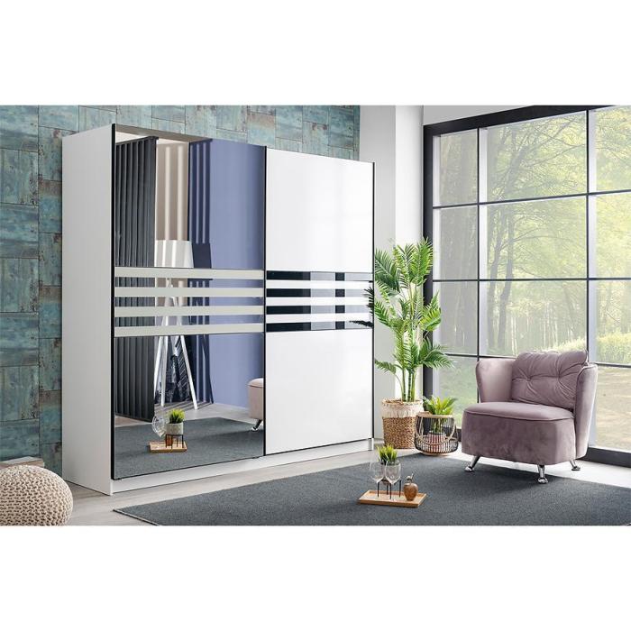 Szafa przesuwna Galicja to propozycja do pokoju dziennego, ale znajdzie swoje miejsce również w innym pomieszczeniu, jak na przykład - przedpokój czy garderobie. Materiał wykonania to płyta wiórowa laminowana. Szafa posiada półki oraz drążek na ubrania. Mebel posiada lustro, które sprawi, że pomieszczenie stanie się optycznie większe. Nowoczesny styl mebli wpadnie do gustu każdemu, kto poszukuje eleganckiego, klasycznego, a zarazem nowoczesnego umeblowania. Idealnie wpasuje się w większość aranżacji. Przeznaczona do samodzielnego montażu.
