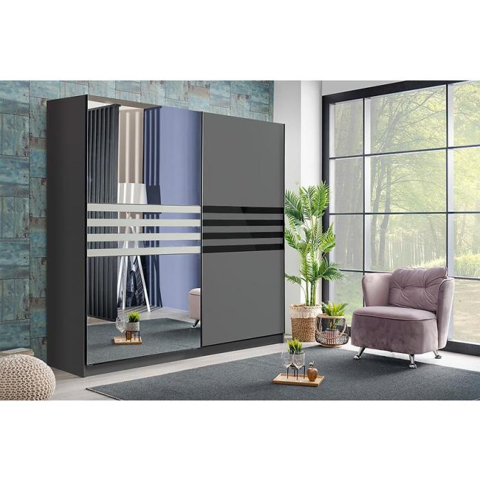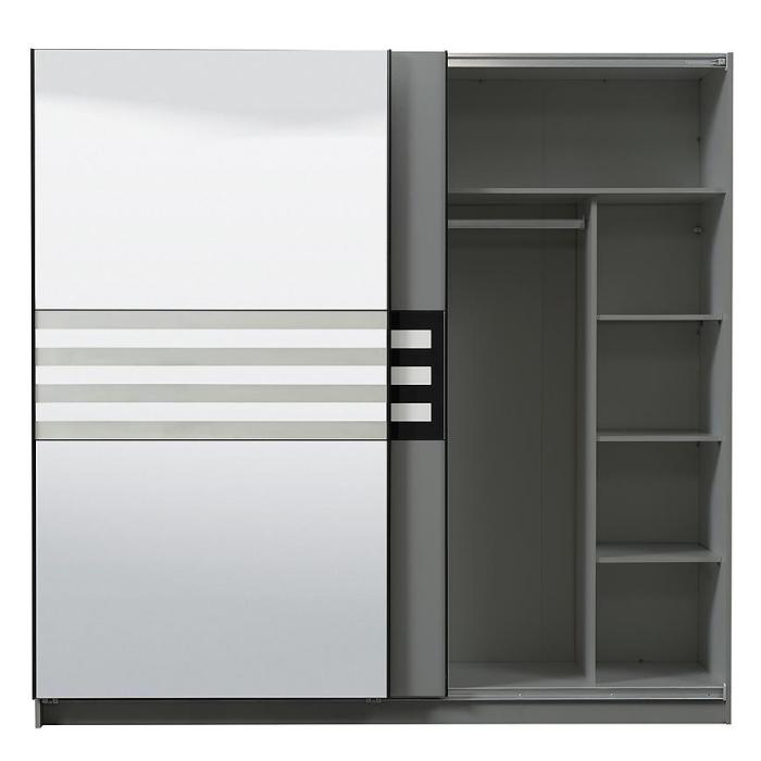 Szafa przesuwna Galicja to propozycja do pokoju dziennego, ale znajdzie swoje miejsce również w innym pomieszczeniu, jak na przykład - przedpokój czy garderobie. Materiał wykonania to płyta wiórowa laminowana. Szafa posiada półki oraz drążek na ubrania. Mebel posiada lustro, które sprawi, że pomieszczenie stanie się optycznie większe. Nowoczesny styl mebli wpadnie do gustu każdemu, kto poszukuje eleganckiego, klasycznego, a zarazem nowoczesnego umeblowania. Idealnie wpasuje się w większość aranżacji. Przeznaczona do samodzielnego montażu.