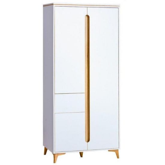 Szafa w kolorze biały/jesion górski z serii Gappa to doskonała propozycja do pokoju dziecka młodzieżowego, ale znajdzie swoje miejsce również w innym pomieszczeniu, jak na przykład - przedpokój czy garderobie, sypialni. Szafa posiada półki, po prawej stronie półka z drążkiem na ubrania, wysokie nóżki oraz ozdobne blaty i listwy. Mebel będzie świetnym miejscem do wieszania ubrań, na buty lub inne domowe tekstylia. Nowoczesny styl mebli wpadnie do gustu każdemu, kto poszukuje eleganckiego, klasycznego, a zarazem nowoczesnego umeblowania. Idealnie wpasuje się w większość aranżacji. Szafa przeznaczona do samodzielnego montażu.