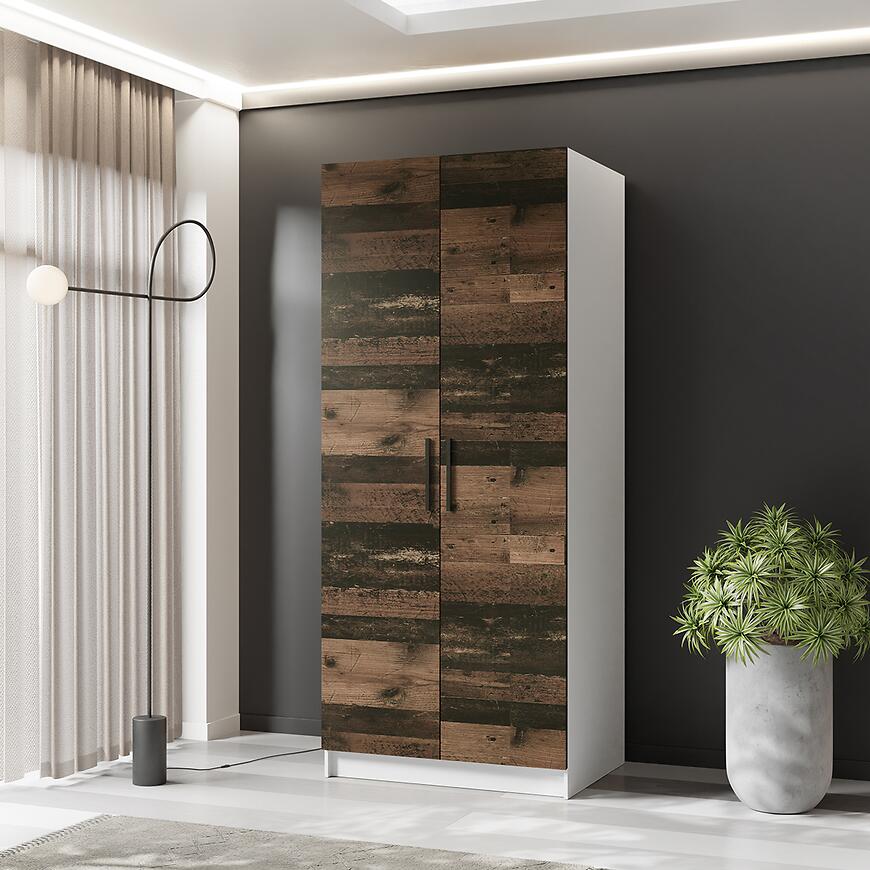 Szafa Gold 2d Biały/Old Style to nowoczesny i elegancki mebel, łączący funkcjonalność z klasycznym akcentem drewna. Posiada dwudrzwiową konstrukcję z klasycznymi drzwiami, oferując wygodną przestrzeń do przechowywania ubrań i akcesoriów. Wykonana z laminowanej płyty wiórowej, z frontami w odcieniu Old Style i korpusem w białym macie, łączy trwałość z estetyką. Dzięki wymiarom 78 × 205 × 52,5 cm jest praktyczna i jednocześnie zajmuje niewiele miejsca, idealnie wpisując się w nowoczesne wnętrza.
