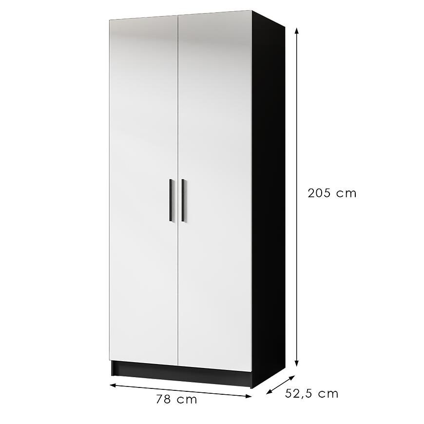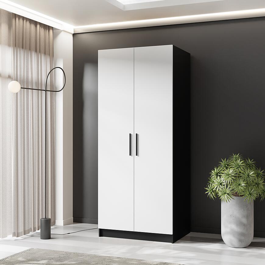 Szafa Gold 2d Czarny/Biały to nowoczesny i stylowy mebel, łączący elegancję z funkcjonalnością. Posiada dwudrzwiową konstrukcję z klasycznymi drzwiami, zapewniając wygodną przestrzeń do przechowywania ubrań i dodatków. Wykonana z laminowanej płyty wiórowej, z frontami w białym macie i korpusem w czarnym macie, łączy trwałość z nowoczesnym designem. Dzięki wymiarom 78 × 205 × 52,5 cm jest praktyczna, kompaktowa i idealnie wpisuje się w różnorodne aranżacje wnętrz.