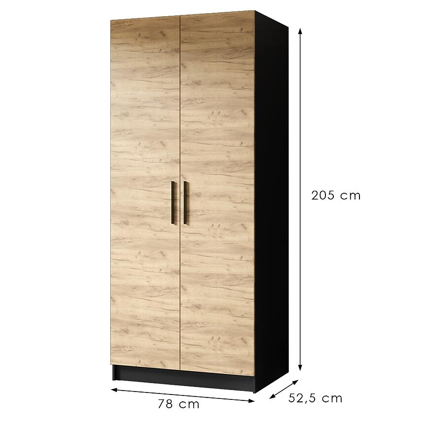 Szafa Gold 2d Czarny/Dąb Craft Złoty to nowoczesny i elegancki mebel, łączący funkcjonalność z atrakcyjnym designem. Posiada dwudrzwiową konstrukcję z klasycznymi drzwiami, oferując wygodną przestrzeń do przechowywania ubrań i akcesoriów. Wykonana z laminowanej płyty wiórowej, z frontami w odcieniu dąb craft złoty i korpusem w czarnym macie, łączy trwałość z estetyką. Dzięki wymiarom 78 × 205 × 52,5 cm jest praktyczna i kompaktowa, doskonale wpisując się w nowoczesne aranżacje wnętrz.