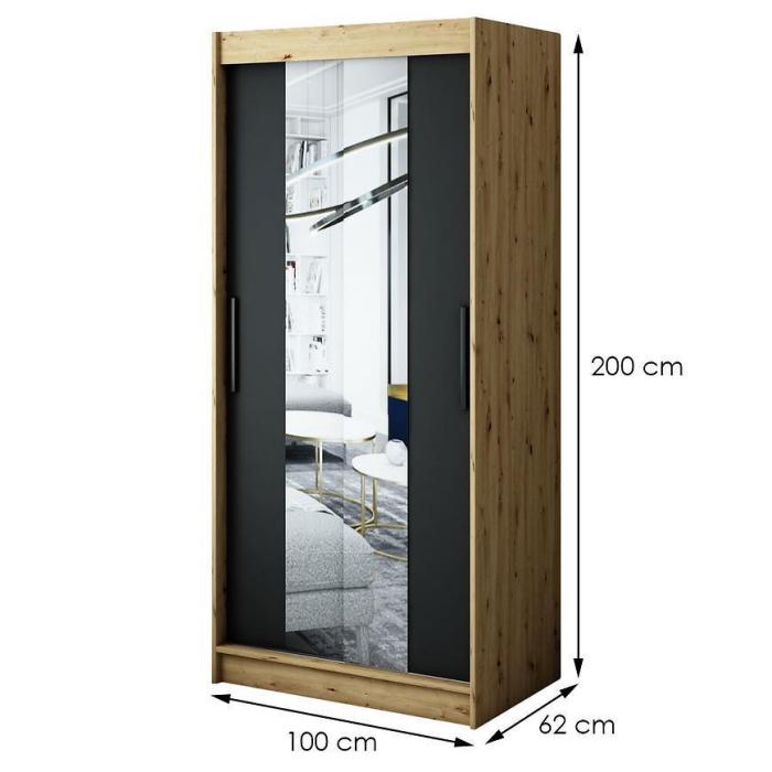 Szafa Halifax T1 100 Dąb Artisan/Czarny/Lustro