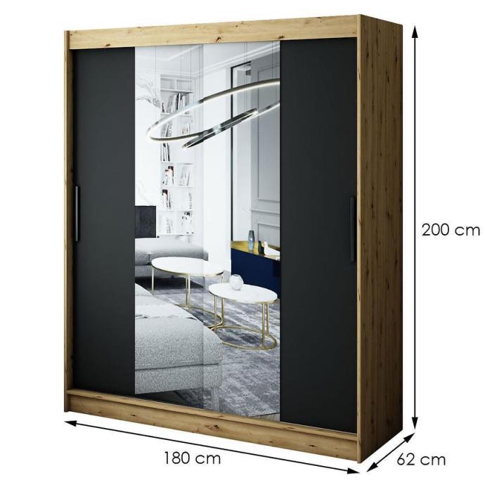 Szafa Halifax T1 180 Dąb Artisan/Czarny/Lustro