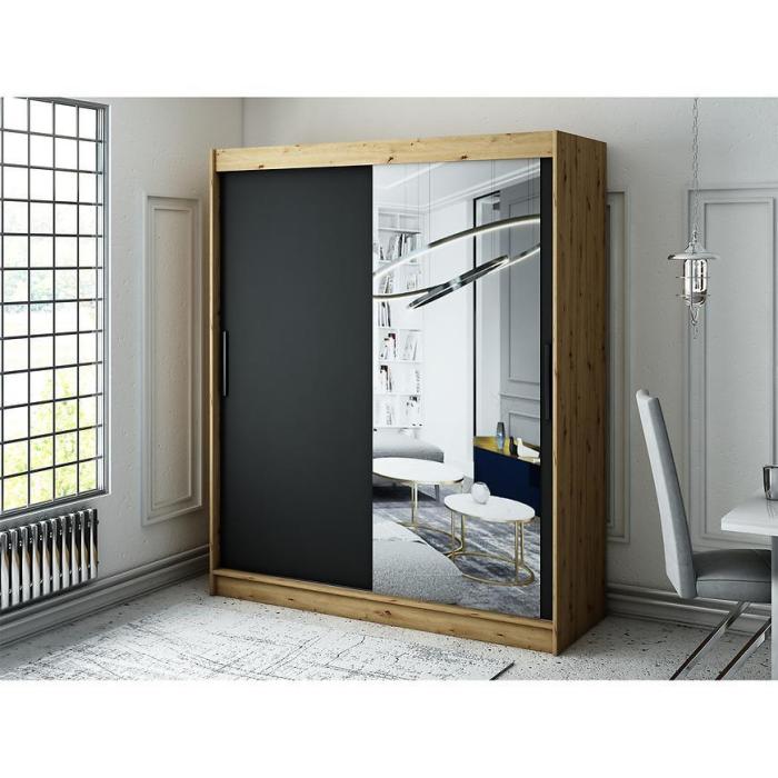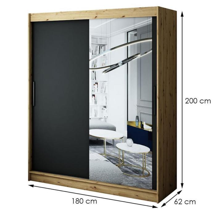 Szafa Halifax T2 180 Dąb Artisan/Czarny/Lustro