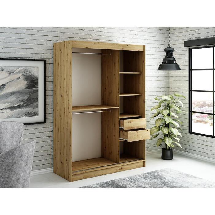 Wygląd szafy Halifax zachwyci każdego zwolennika nowoczesnego, a zarazem uniwersalnego stylu. Szafa posiada wystarczającą ilość miejsca na ubrania oraz na inne przedmioty. Jest to niezbędny element wyposażenia w każdym domu, garderobie czy przedpokoju. Materiał wykonania to płyta wiórowa laminowana.
