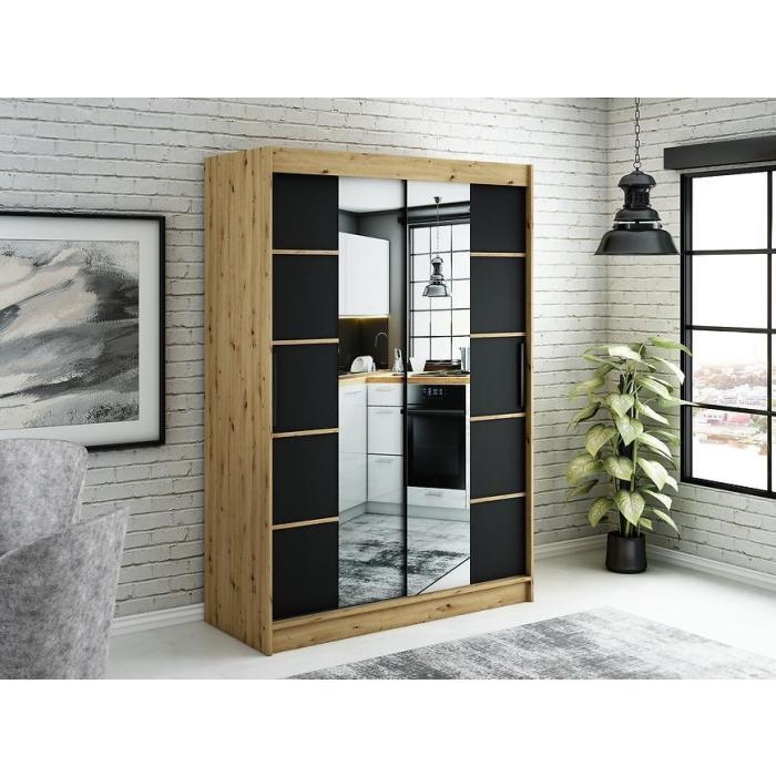 Szafa Halifax V4 150 Dąb Artisan/Czarny/Lustro