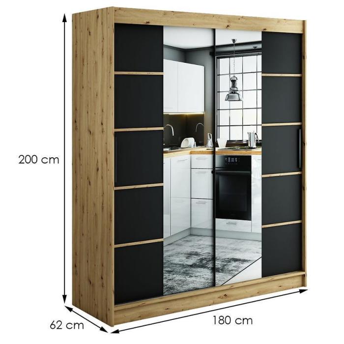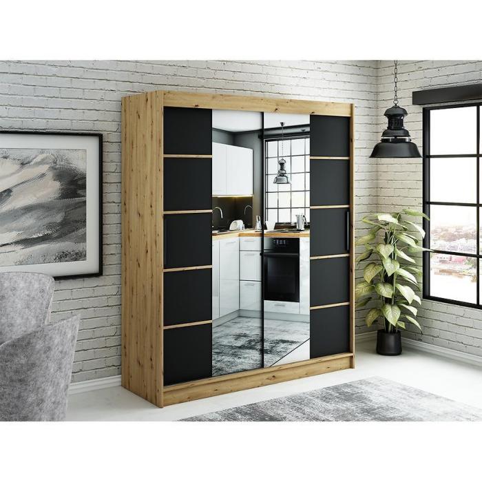 Szafa Halifax V4 180 Dąb Artisan/Czarny/Lustro