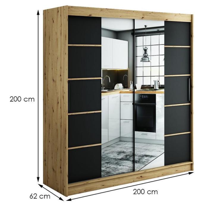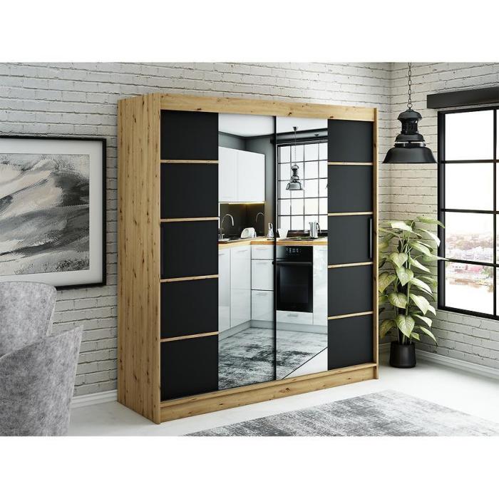 Szafa Halifax V4 200 Dąb Artisan/Czarny/Lustro