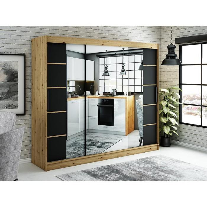 Obrazek Szafa Halifax V4 200 Dąb Artisan/Czarny/Lustro
