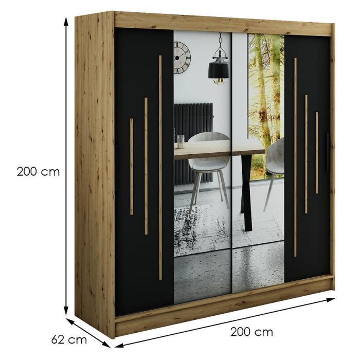 Szafa Halifax Y1 200 Dąb Artisan/Czarny/Lustro