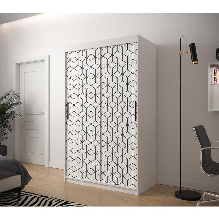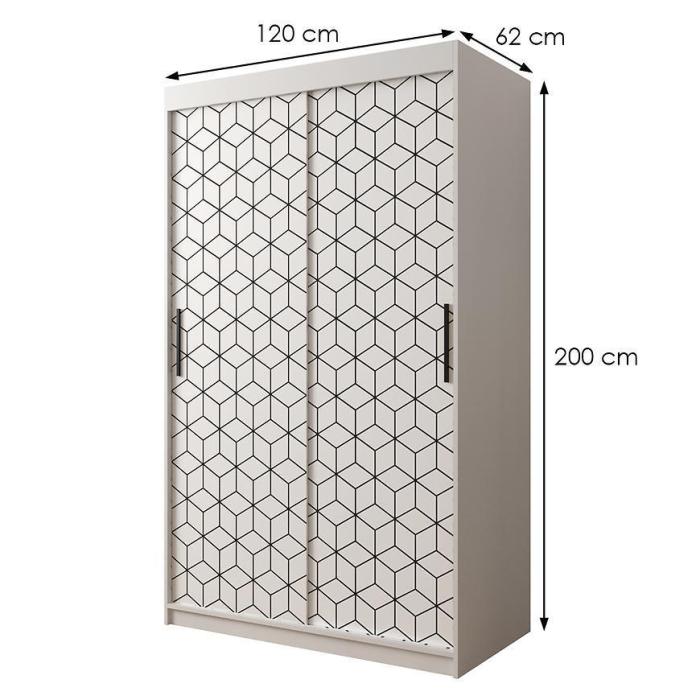 Szafa przesuwna Heksagon to propozycja do pokoju dziennego, ale znajdzie swoje miejsce również w innym pomieszczeniu, jak na przykład - przedpokój czy garderobie. Materiał wykonania to płyta wiórowa laminowana o grubości 16mm, tył szafy wykonany z płyty HDF. Krawędzie wykończenia odporną na uszkodzenia okleiną PCV 0,5 mm. Wzoru plastra wykonany techniką nadruku w kolorze czarnym. Szafa posiada półki oraz drążek na ubrania. Nowoczesny styl mebli wpadnie do gustu każdemu, kto poszukuje eleganckiego, klasycznego, a zarazem nowoczesnego umeblowania. Idealnie wpasuje się w większość aranżacji. Przeznaczona do samodzielnego montażu.