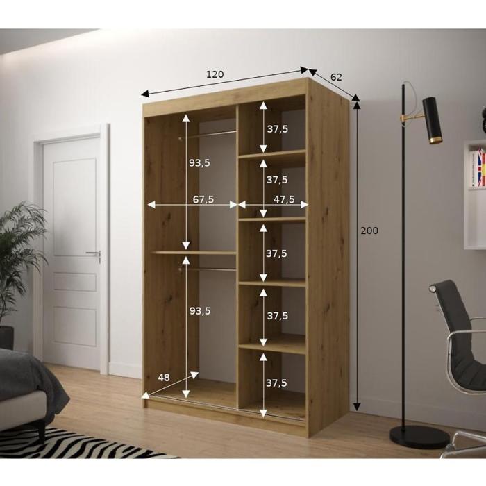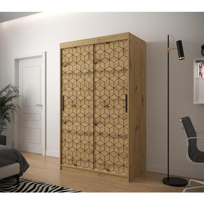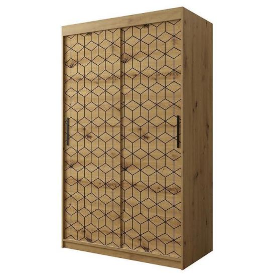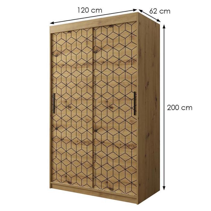 Szafa przesuwna Heksagon to propozycja do pokoju dziennego, ale znajdzie swoje miejsce również w innym pomieszczeniu, jak na przykład - przedpokój czy garderobie. Materiał wykonania to płyta wiórowa laminowana o grubości 16mm, tył szafy wykonany z płyty HDF. Krawędzie wykończenia odporną na uszkodzenia okleiną PCV 0,5 mm. Wzoru plastra wykonany techniką nadruku w kolorze czarnym. Szafa posiada półki oraz drążek na ubrania. Nowoczesny styl mebli wpadnie do gustu każdemu, kto poszukuje eleganckiego, klasycznego, a zarazem nowoczesnego umeblowania. Idealnie wpasuje się w większość aranżacji. Przeznaczona do samodzielnego montażu.