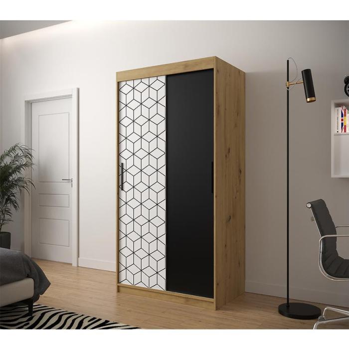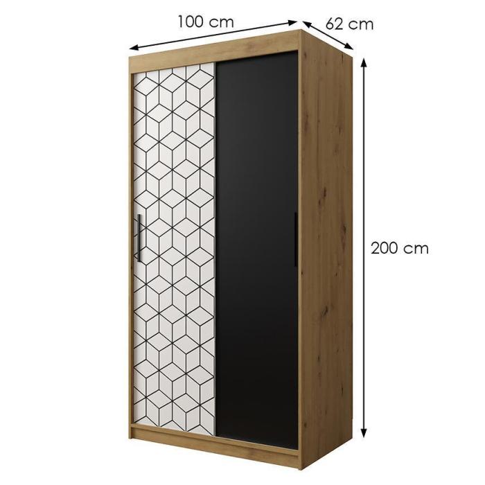 Szafa przesuwna Heksagon to propozycja do pokoju dziennego, ale znajdzie swoje miejsce również w innym pomieszczeniu, jak na przykład - przedpokój czy garderobie. Materiał wykonania to płyta wiórowa laminowana. Szafa posiada półki oraz drążek na ubrania. Nowoczesny styl mebli wpadnie do gustu każdemu, kto poszukuje eleganckiego, klasycznego, a zarazem nowoczesnego umeblowania. Idealnie wpasuje się w większość aranżacji. Przeznaczona do samodzielnego montażu.