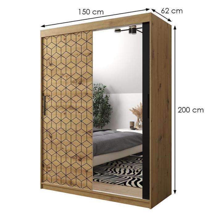 Szafa przesuwna Heksagon to propozycja do pokoju dziennego, ale znajdzie swoje miejsce również w innym pomieszczeniu, jak na przykład - przedpokój czy garderobie. Materiał wykonania to płyta wiórowa laminowana. Wzoru plastra wykonany techniką nadruku w kolorze czarnym. Szafa posiada półki oraz drążek na ubrania. Szafa posiada również lustro, które sprawi, że pomieszczenie stanie się optycznie większe. Nowoczesny styl mebli wpadnie do gustu każdemu, kto poszukuje eleganckiego, klasycznego, a zarazem nowoczesnego umeblowania. Idealnie wpasuje się w większość aranżacji. Przeznaczona do samodzielnego montażu.