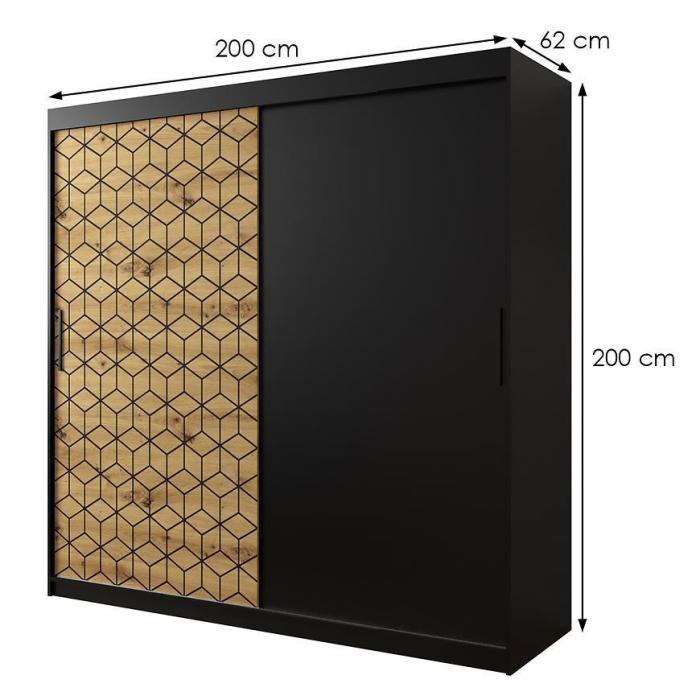 Szafa przesuwna Heksagon to propozycja do pokoju dziennego, ale znajdzie swoje miejsce również w innym pomieszczeniu, jak na przykład - przedpokój czy garderobie. Materiał wykonania to płyta wiórowa laminowana. Szafa posiada półki oraz drążek na ubrania. Nowoczesny styl mebli wpadnie do gustu każdemu, kto poszukuje eleganckiego, klasycznego, a zarazem nowoczesnego umeblowania. Idealnie wpasuje się w większość aranżacji. Przeznaczona do samodzielnego montażu.