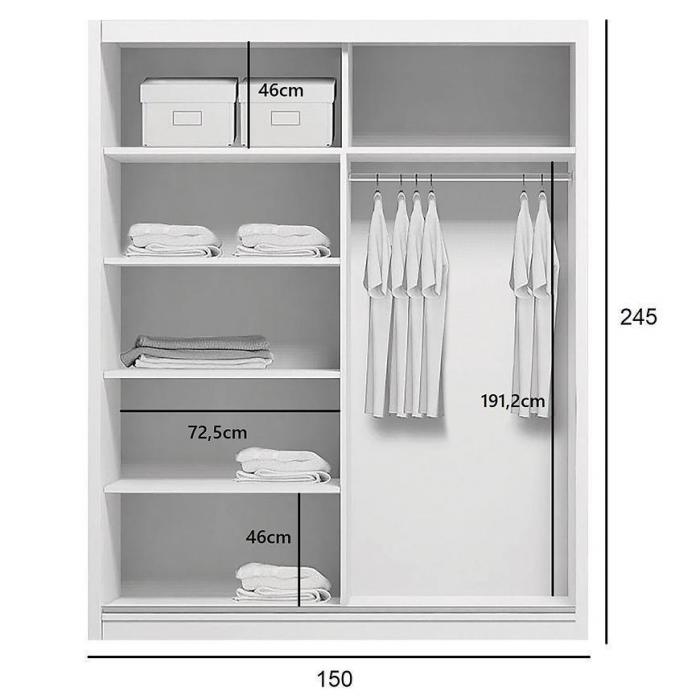Szafa w kolorze białym z kolekcji Helena to doskonała propozycja do pokoju dziennego, ale znajdzie swoje miejsce również w innym pomieszczeniu, jak na przykład - przedpokój czy garderobie, sypialni. Materiał wykonania to płyta laminowana. Szafa posiada półki, drążek na ubrania. Duża szafa posiada również lustro, które sprawi, że pomieszczenie stanie się optycznie większe. Mebel będzie świetnym miejscem do wieszania ubrań, na buty lub inne domowe tekstylia. Nowoczesny styl mebli wpadnie do gustu każdemu, kto poszukuje eleganckiego, klasycznego, a zarazem nowoczesnego umeblowania. Idealnie wpasuje się w większość aranżacji . Szafa przeznaczona do samodzielnego montażu.