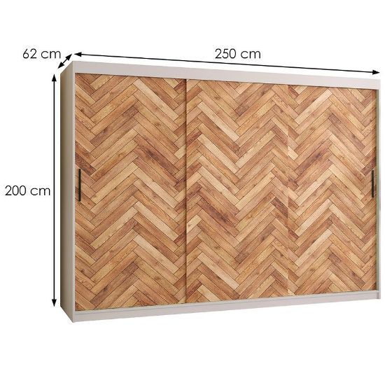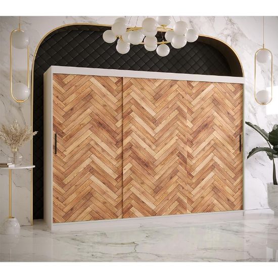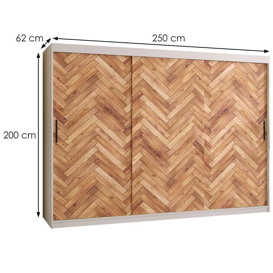 Szafa HERRINGBONE 1 to niezwykle stylowe i funkcjonalne rozwiązanie, które wprowadzi do Twojej przestrzeni unikalny retro charakter. Zaprojektowana z myślą o estetyce i praktyczności, ta trzydrzwiowa szafa z drzwiami przesuwnymi zachwyca nie tylko wyglądem, ale także solidnością wykonania.