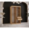 Co wyróżnia tę szafę spośród innych to oryginalny wzór, który nie jest jedynie naklejką. Dbałość o szczegóły i wysoka jakość wykonania są widoczne na każdym etapie produkcji. Prowadnice aluminiowe oraz uchwyty z tworzywa sztucznego w czarnym kolorze zapewniają płynne i ciche przesuwanie drzwi, podkreślając ergonomiczność mebla.
