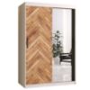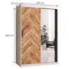 Konstrukcja szafy, wykonana jest z płyty laminowanej o grubości 16 mm, gwarantuje trwałość i stabilność. Fronty drzwi w eleganckim kolorze dąb artisan oraz lustro, nadają szafie HERRINGBONE wyjątkowego uroku, tworząc kontrastowy i harmonijny design. Matowe wykończenie dodaje meblowi subtelnego charakteru, podkreślając jego retro styl.
