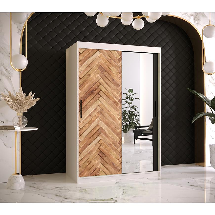 Szafa HERRINGBONE 2 to niezwykle stylowe i funkcjonalne rozwiązanie, które wprowadzi do Twojej przestrzeni unikalny retro charakter. Zaprojektowana z myślą o estetyce i praktyczności, ta dwudrzwiowa szafa z drzwiami przesuwnymi zachwyca nie tylko wyglądem, ale także solidnością wykonania.