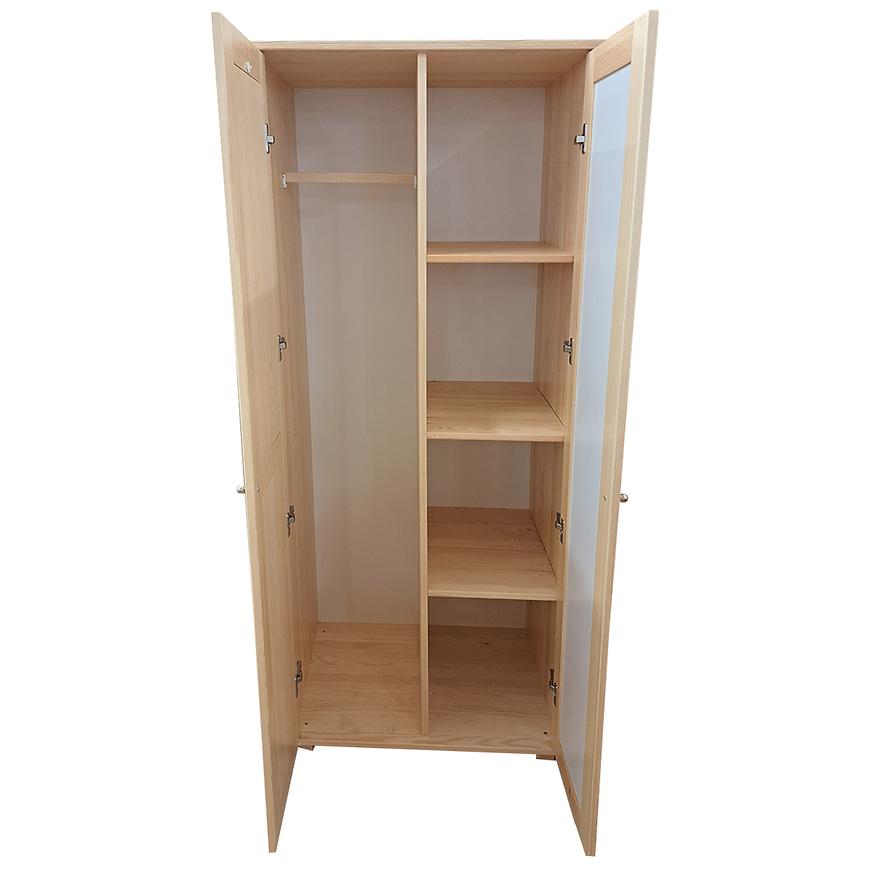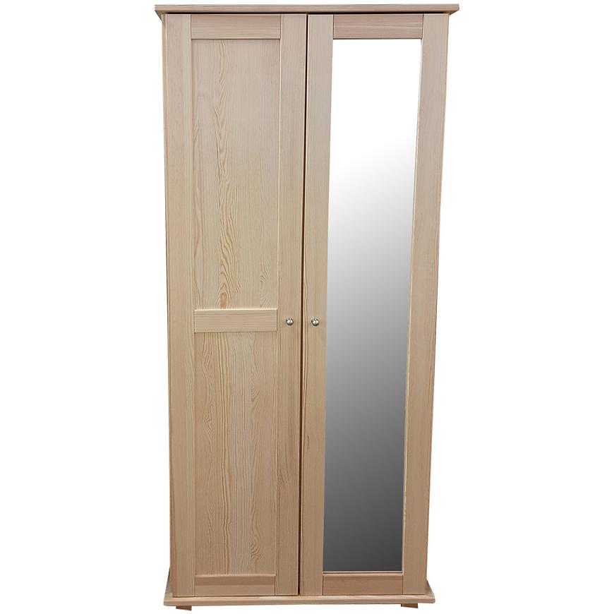Lustro umieszczone na frontach nie tylko zwiększa wizualną przestronność pomieszczenia, ale także stanowi praktyczny element, który ułatwia codzienne przygotowania do wyjścia. Szafa dysponuje dużą pojemnością, dzięki czemu można w niej z łatwością przechowywać odzież, obuwie oraz inne akcesoria. Klasyczne, dwudrzwiowe rozwiązanie sprawia, że korzystanie z mebla jest niezwykle komfortowe.