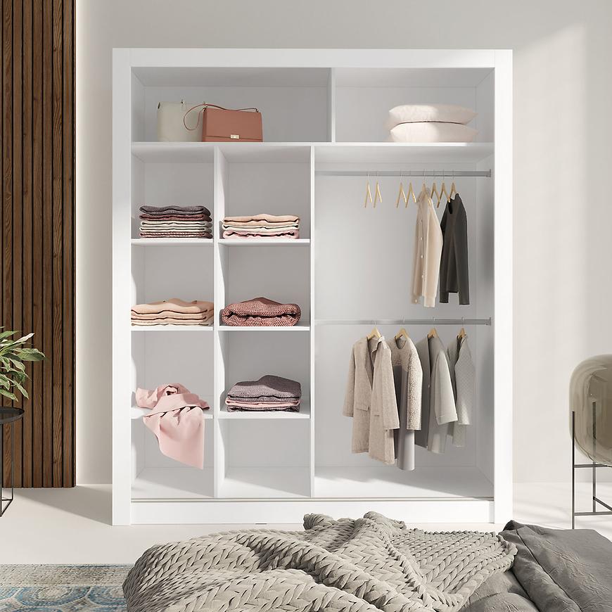 Szafa z drzwiami przesuwnymi In Box to doskonały wybór do garderoby czy sypialni. Kolor frontów i korpusu sprawiają, że wpasuje się w większość aranżacji. Jej wnętrze jest pojemne i pomieści zarówno ubrania jak i inne akcesoria.