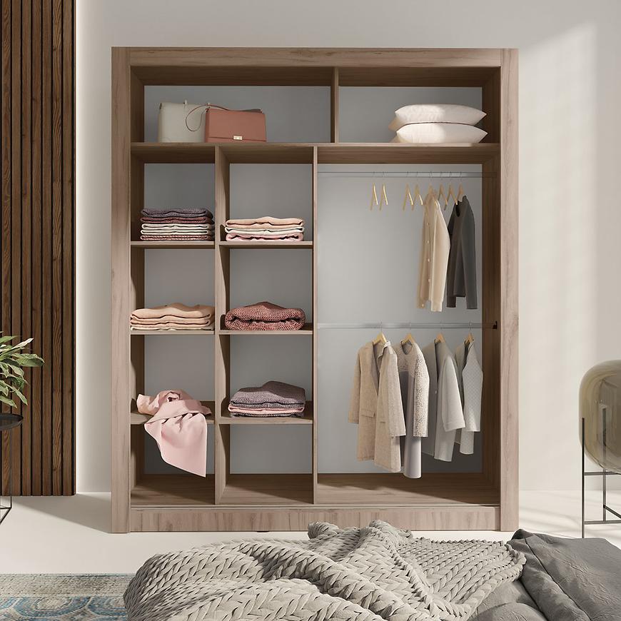 Wygląd szafy In Box zachwyci każdego zwolennika nowoczesnego, a zarazem uniwersalnego stylu. Szafa posiada wystarczającą ilość miejsca na ubrania oraz na inne przedmioty. Jest to niezbędny element wyposażenia w każdym domu, garderobie czy pokoju dziennym. Materiał wykonania to płyta wiórowa laminowana.