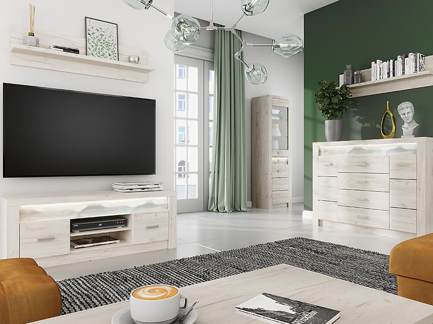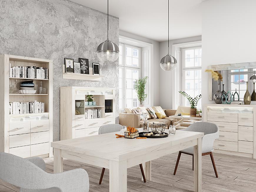 Szafa w kolorze kraft biały z kolekcji Indianapolis to doskonała propozycja do pokoju dziennego, ale znajdzie swoje miejsce również w innym pomieszczeniu, jak na przykład - przedpokój czy garderobie, sypialni. Materiał wykonania to płyta laminowana. Szafa posiada półki oraz szuflady. Mebel będzie świetnym miejscem do wieszania ubrań, na buty lub inne domowe tekstylia. Nowoczesny styl mebli wpadnie do gustu każdemu, kto poszukuje eleganckiego, klasycznego, a zarazem nowoczesnego umeblowania. Idealnie wpasuje się w większość aranżacji. Szafa przeznaczona do samodzielnego montażu.