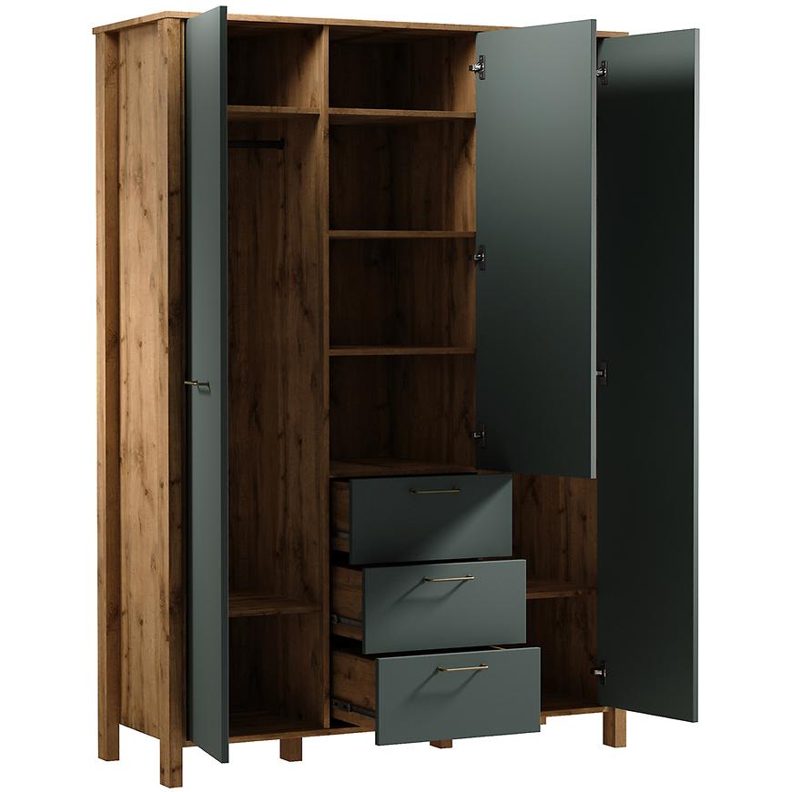 System Indygo Green to kolekcja mebli, która łączy stylową elegancję z nowoczesnym designem. Głęboki, szlachetny odcień zieleni nadaje wnętrzu wyjątkowego charakteru, wprowadzając atmosferę spokoju i harmonii. Połączenie tej barwy z subtelnymi detalami tworzy wyrafinowany, ale jednocześnie przytulny efekt.