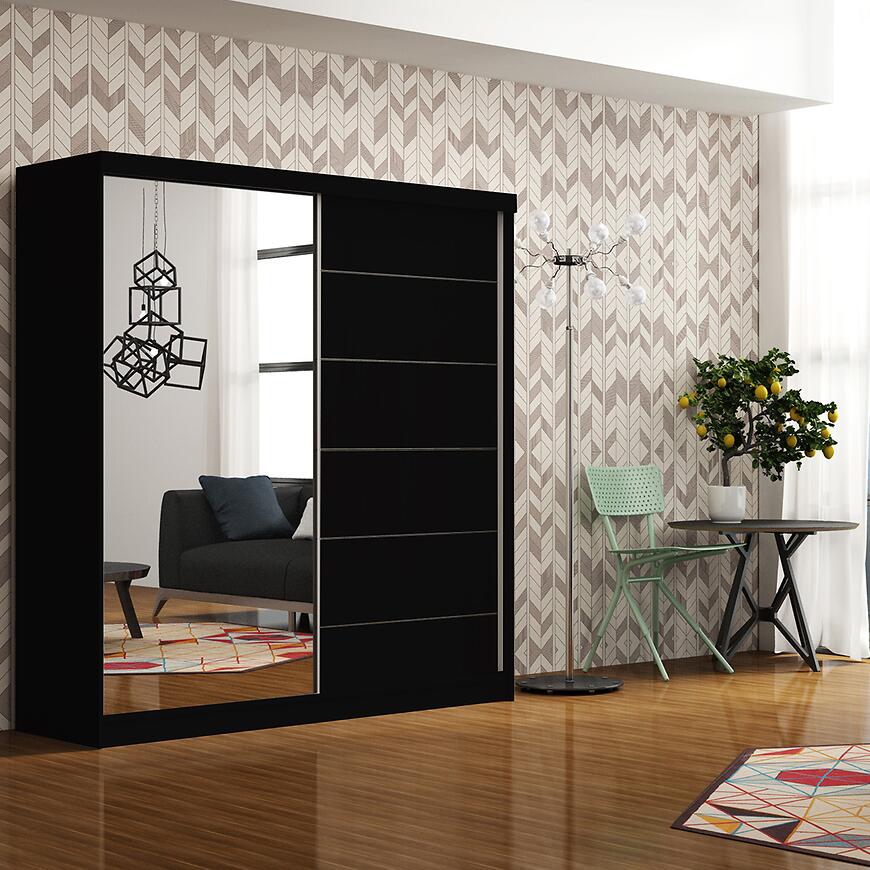 Szafa Infiniti 150 – nowoczesna czarna szafa przesuwna 150 cm z lustrem
