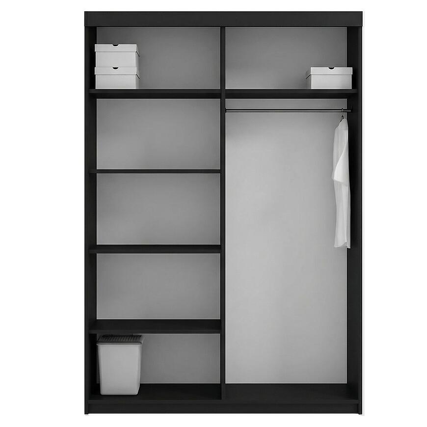 Szafa Infiniti 150 została zaprojektowana z myślą o maksymalnym wykorzystaniu przestrzeni użytkowej. Dwudrzwiowy system przesuwny umożliwia wygodny dostęp do wnętrza, ułatwiając organizację ubrań, dodatków i tekstyliów. To idealna szafa do sypialni czarna, która sprawdzi się zarówno w codziennym użytkowaniu, jak i przy przechowywaniu sezonowej garderoby. Solidna konstrukcja o wadze 137 kg zapewnia stabilność oraz długotrwałe użytkowanie.
