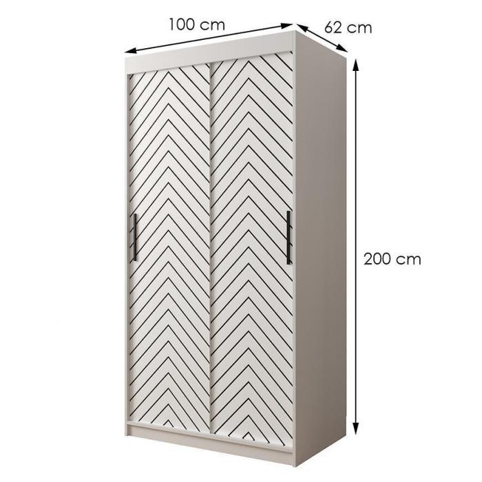 Szafa z drzwiami przesuwnymi Jodełka to doskonały wybór do garderoby, przedpokoju, salonu czy sypialni. Kolor frontów i korpusu sprawiają, że wpasuje się w większość aranżacji. Jej wnętrze jest pojemne i pomieści zarówno ubrania jak i inne akcesoria. Szafa jest 2-drzwiowa.
