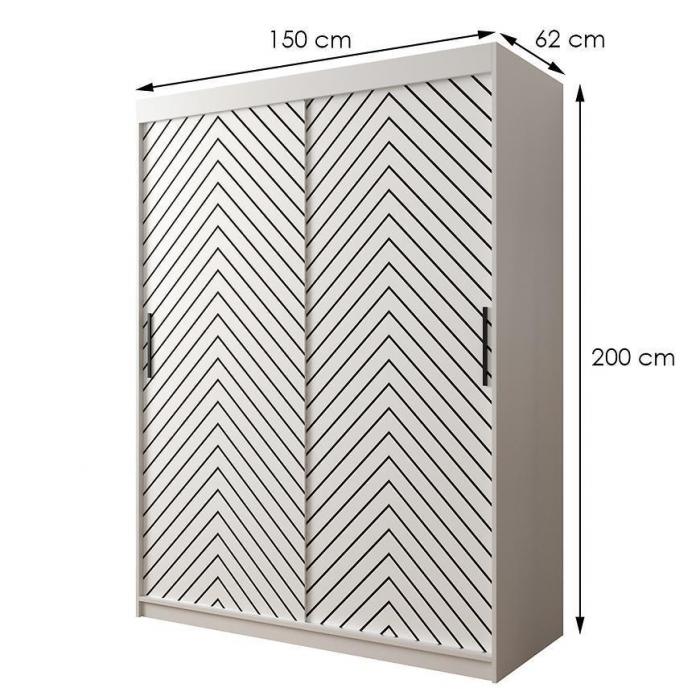 Szafa z drzwiami przesuwnymi Jodełka to doskonały wybór do garderoby, przedpokoju, salonu czy sypialni. Kolor frontów i korpusu sprawiają, że wpasuje się w większość aranżacji. Jej wnętrze jest pojemne i pomieści zarówno ubrania jak i inne akcesoria. Szafa jest 2-drzwiowa.