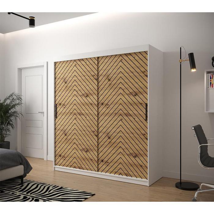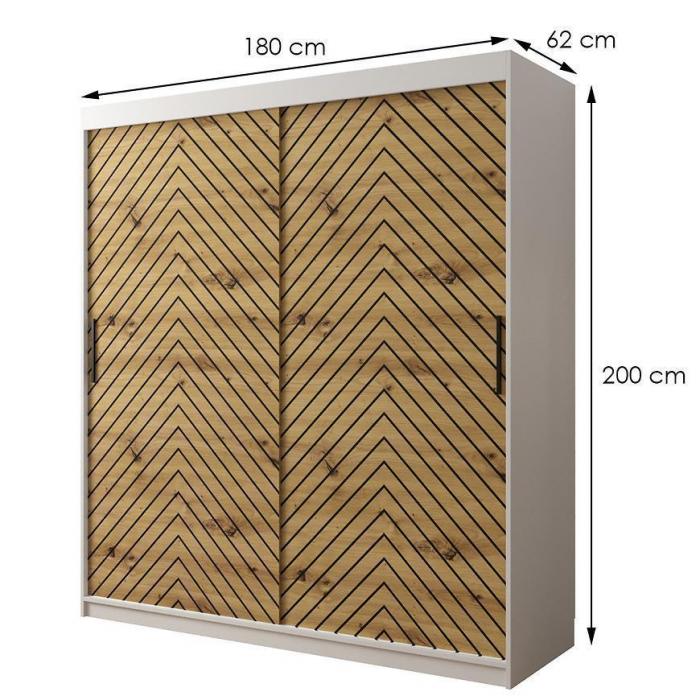 Szafa z drzwiami przesuwnymi Jodełka to doskonały wybór do garderoby, przedpokoju, salonu czy sypialni. Kolor frontów i korpusu sprawiają, że wpasuje się w większość aranżacji. Jej wnętrze jest pojemne i pomieści zarówno ubrania jak i inne akcesoria. Szafa jest 2-drzwiowa.