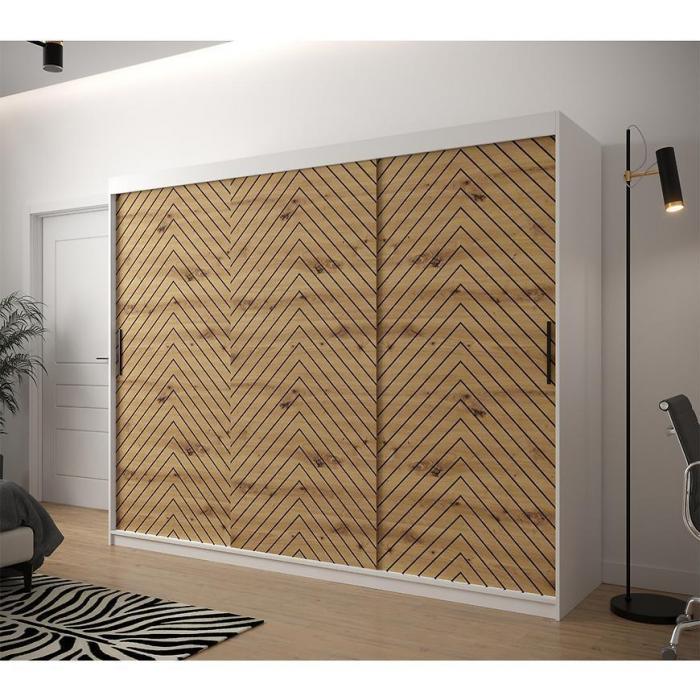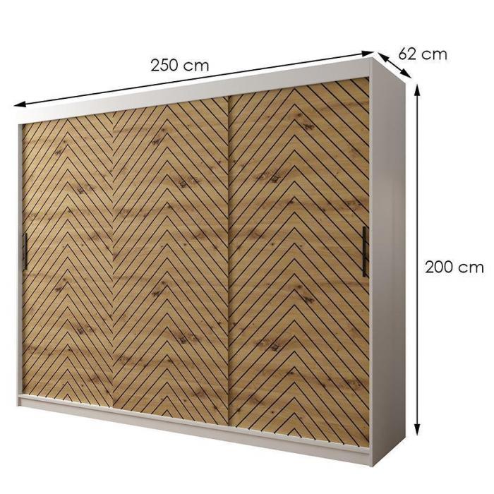Szafa z drzwiami przesuwnymi Jodełka to doskonały wybór do garderoby, przedpokoju, salonu czy sypialni. Kolor frontów i korpusu sprawiają, że wpasuje się w większość aranżacji. Jej wnętrze jest pojemne i pomieści zarówno ubrania jak i inne akcesoria. Szafa jest 3-drzwiowa.