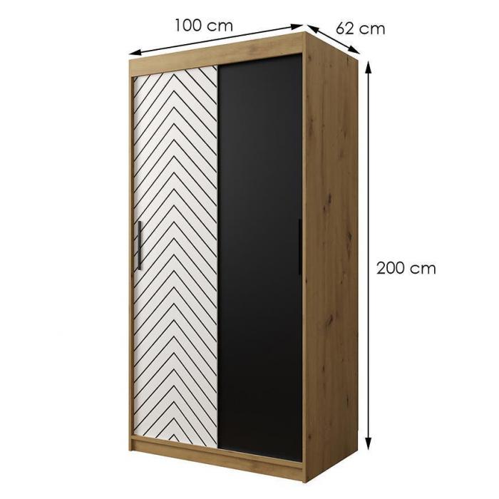 Szafa z drzwiami przesuwnymi Jodełka to doskonały wybór do garderoby, przedpokoju, salonu czy sypialni. Kolor frontów i korpusu sprawiają, że wpasuje się w większość aranżacji. Jej wnętrze jest pojemne i pomieści zarówno ubrania jak i inne akcesoria. Szafa jest 2-drzwiowa.