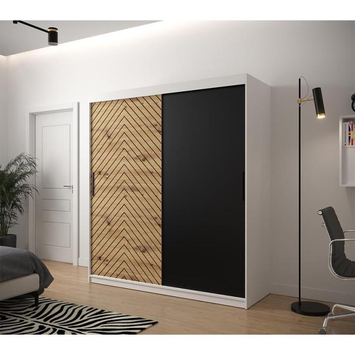 Szafa z drzwiami przesuwnymi Jodełka to doskonały wybór do garderoby, przedpokoju, salonu czy sypialni. Kolor frontów i korpusu sprawiają, że wpasuje się w większość aranżacji. Jej wnętrze jest pojemne i pomieści zarówno ubrania jak i inne akcesoria. Szafa jest 2-drzwiowa.