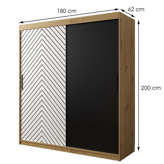Szafa z drzwiami przesuwnymi Jodełka to doskonały wybór do garderoby, przedpokoju, salonu czy sypialni. Kolor frontów i korpusu sprawiają, że wpasuje się w większość aranżacji. Jej wnętrze jest pojemne i pomieści zarówno ubrania jak i inne akcesoria. Szafa jest 2-drzwiowa.