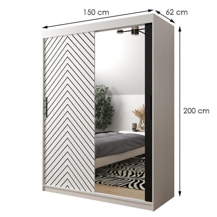 Szafa z drzwiami przesuwnymi Jodełka to doskonały wybór do garderoby, przedpokoju, salonu czy sypialni. Kolor frontów i korpusu sprawiają, że wpasuje się w większość aranżacji. Jej wnętrze jest pojemne i pomieści zarówno ubrania jak i inne akcesoria. Szafa jest 2-drzwiowa.