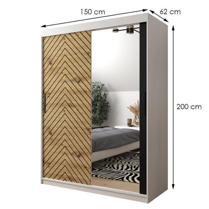 Szafa z drzwiami przesuwnymi Jodełka to doskonały wybór do garderoby, przedpokoju, salonu czy sypialni. Kolor frontów i korpusu sprawiają, że wpasuje się w większość aranżacji. Jej wnętrze jest pojemne i pomieści zarówno ubrania jak i inne akcesoria. Szafa jest 2-drzwiowa.