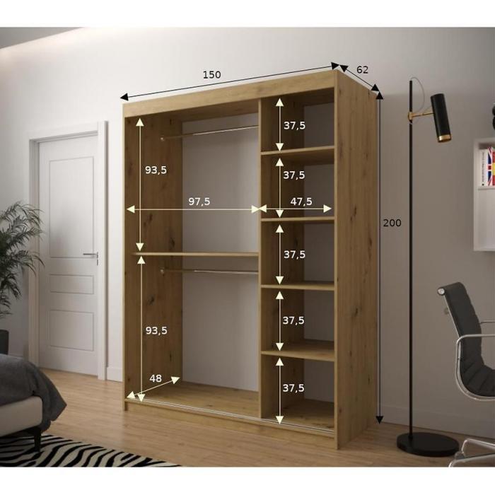Szafa z drzwiami przesuwnymi Jodełka to doskonały wybór do garderoby, przedpokoju, salonu czy sypialni. Kolor frontów i korpusu sprawiają, że wpasuje się w większość aranżacji. Jej wnętrze jest pojemne i pomieści zarówno ubrania jak i inne akcesoria. Szafa jest 2-drzwiowa.