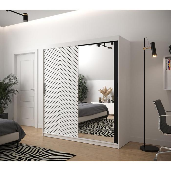Szafa z drzwiami przesuwnymi Jodełka to doskonały wybór do garderoby, przedpokoju, salonu czy sypialni. Kolor frontów i korpusu sprawiają, że wpasuje się w większość aranżacji. Jej wnętrze jest pojemne i pomieści zarówno ubrania jak i inne akcesoria. Szafa jest 2-drzwiowa.