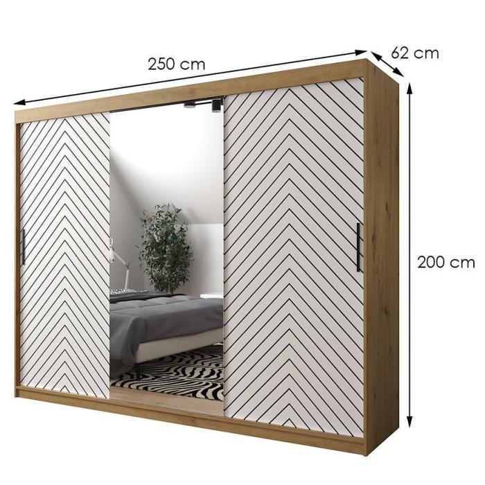 Szafa z drzwiami przesuwnymi Jodełka to doskonały wybór do garderoby, przedpokoju, salonu czy sypialni. Kolor frontów i korpusu sprawiają, że wpasuje się w większość aranżacji. Jej wnętrze jest pojemne i pomieści zarówno ubrania jak i inne akcesoria. Szafa jest 3-drzwiowa.